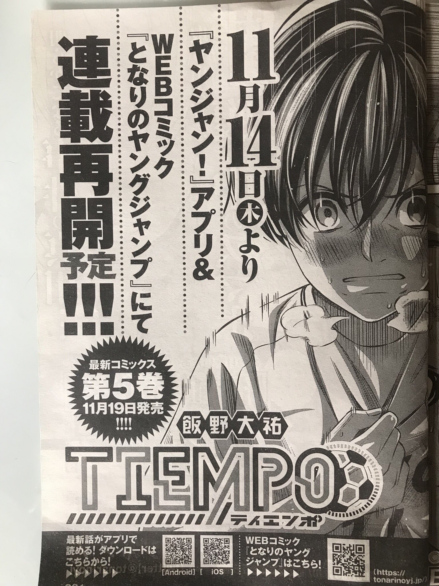 飯野大祐 今日発売のヤングジャンプにティエンポの最新話載ってます そして今回で雑誌での掲載は最後になります 少し間が空きますが連載は続きますのでどうか引き続きアプリかウェブの方で読んでもらえたら嬉しいです T Co